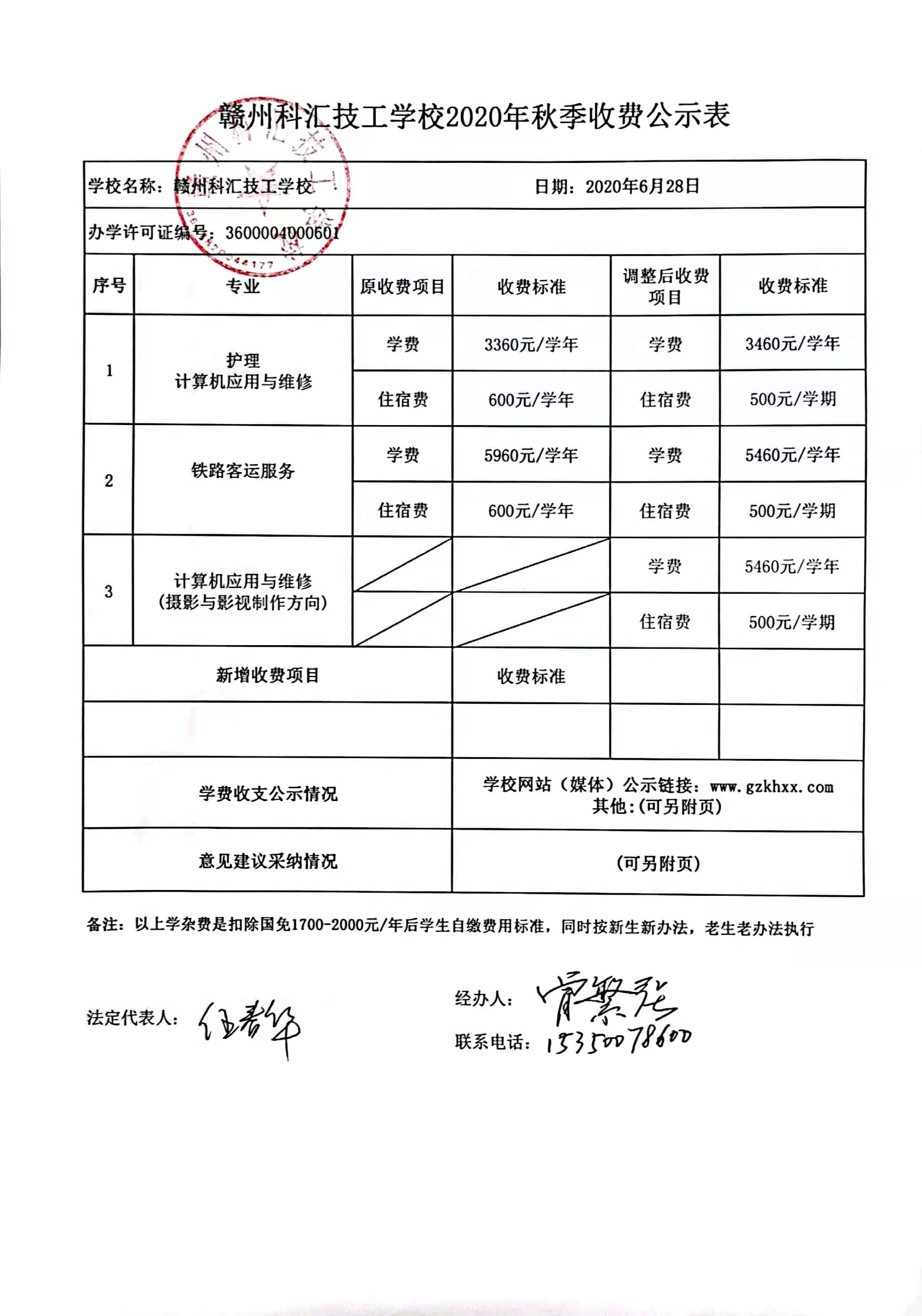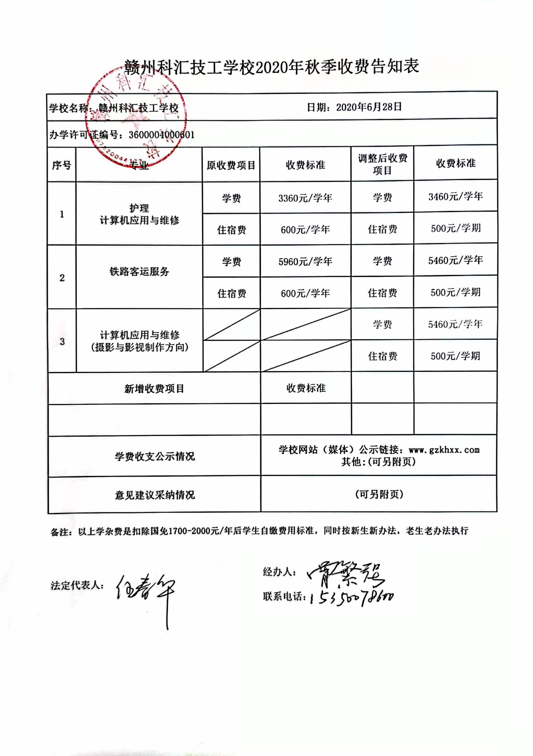 贛州科匯技工學(xué)校2020年秋季收費(fèi)告知表2