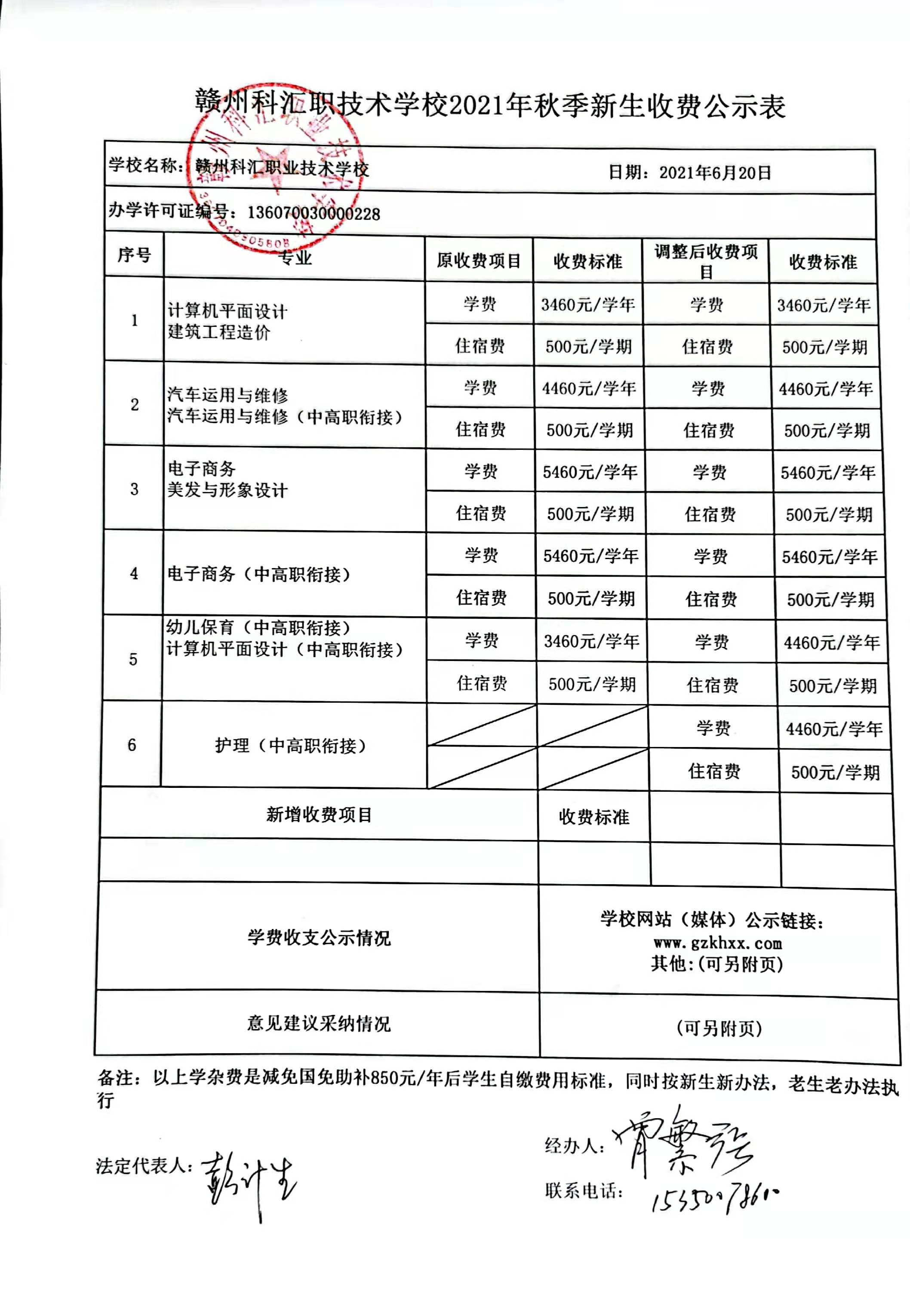 贛州科匯技工學(xué)校2020年秋季收入費(fèi)用表公示