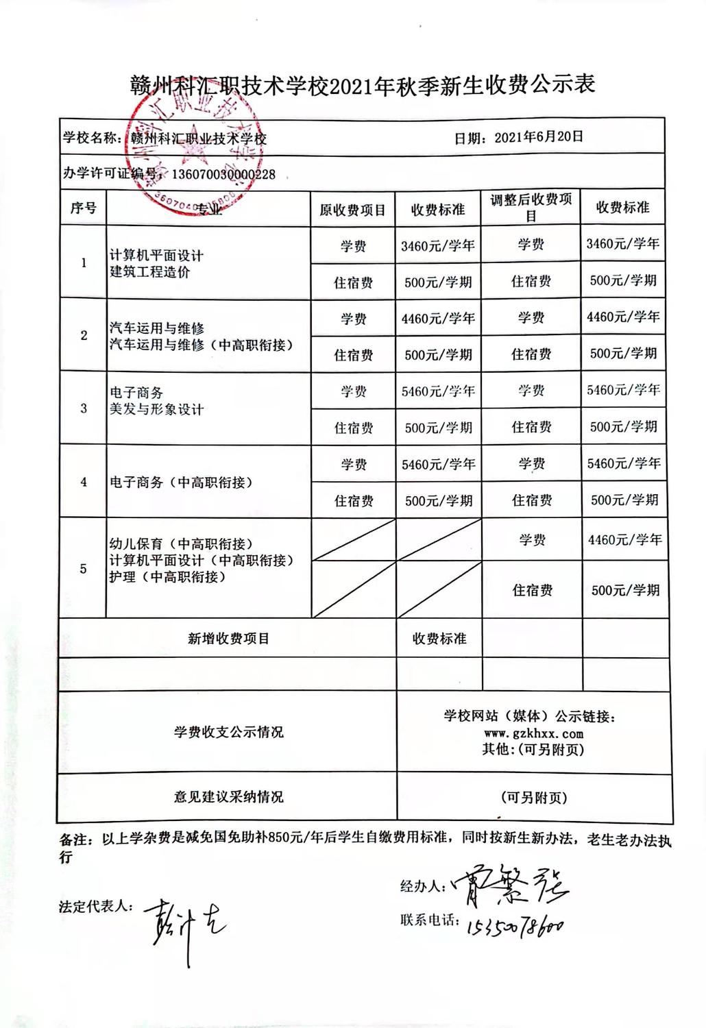 贛州科匯職業(yè)技術(shù)學(xué)校2021年秋季新生收費(fèi)公示表