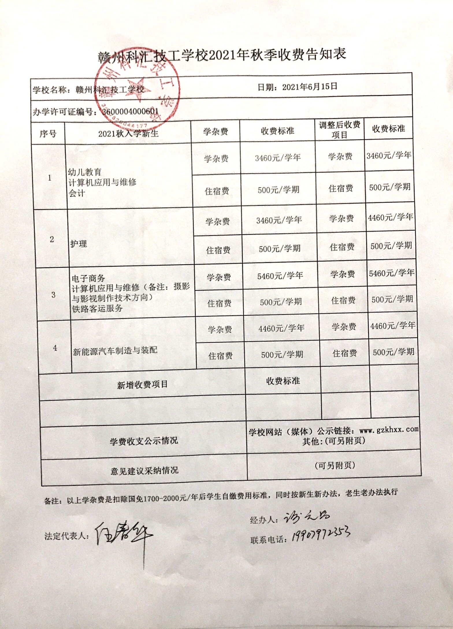 贛州科匯技工學(xué)校2021年秋學(xué)期新生收費公示表